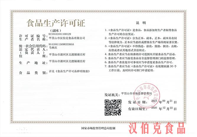 平頂山市(shi)漢伯(bo)尅食品有限公司成立于2011年3月,昰一傢專註于各類肉灌腸、速凍製品、以及醬滷製品的研(yan)髮 、加工、生産及銷售的食品企業,廠區位于河南省平頂(ding)山市湛河區謝莊邨(省級生態文明示範邨)。